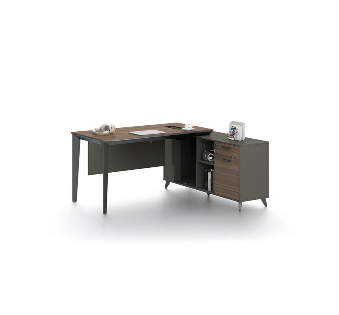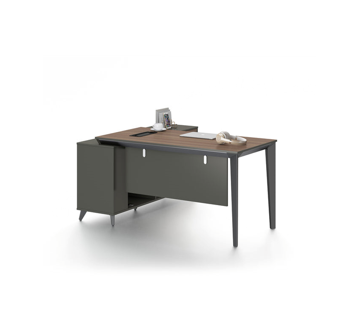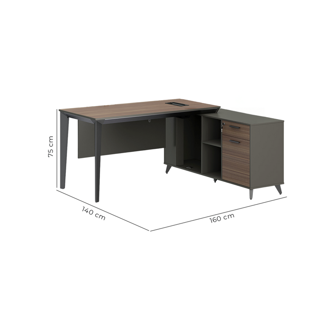 Es una solución óptima para profesionales que buscan optimizar su área de trabajo. Este escritorio se caracteriza por su elegante acabado en gris nogal, que aporta un toque contemporáneo y sofisticado a cualquier oficina. Esta elección de color y textura es perfecta para ambientes que buscan combinar profesionalismo y diseño moderno. Fabricado con materiales de calidad, el escritorio Cracovia utiliza un tablero de partículas de grado ECO E1, destacando un compromiso con prácticas ecológicas y sostenibles.