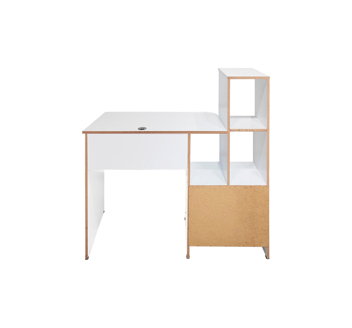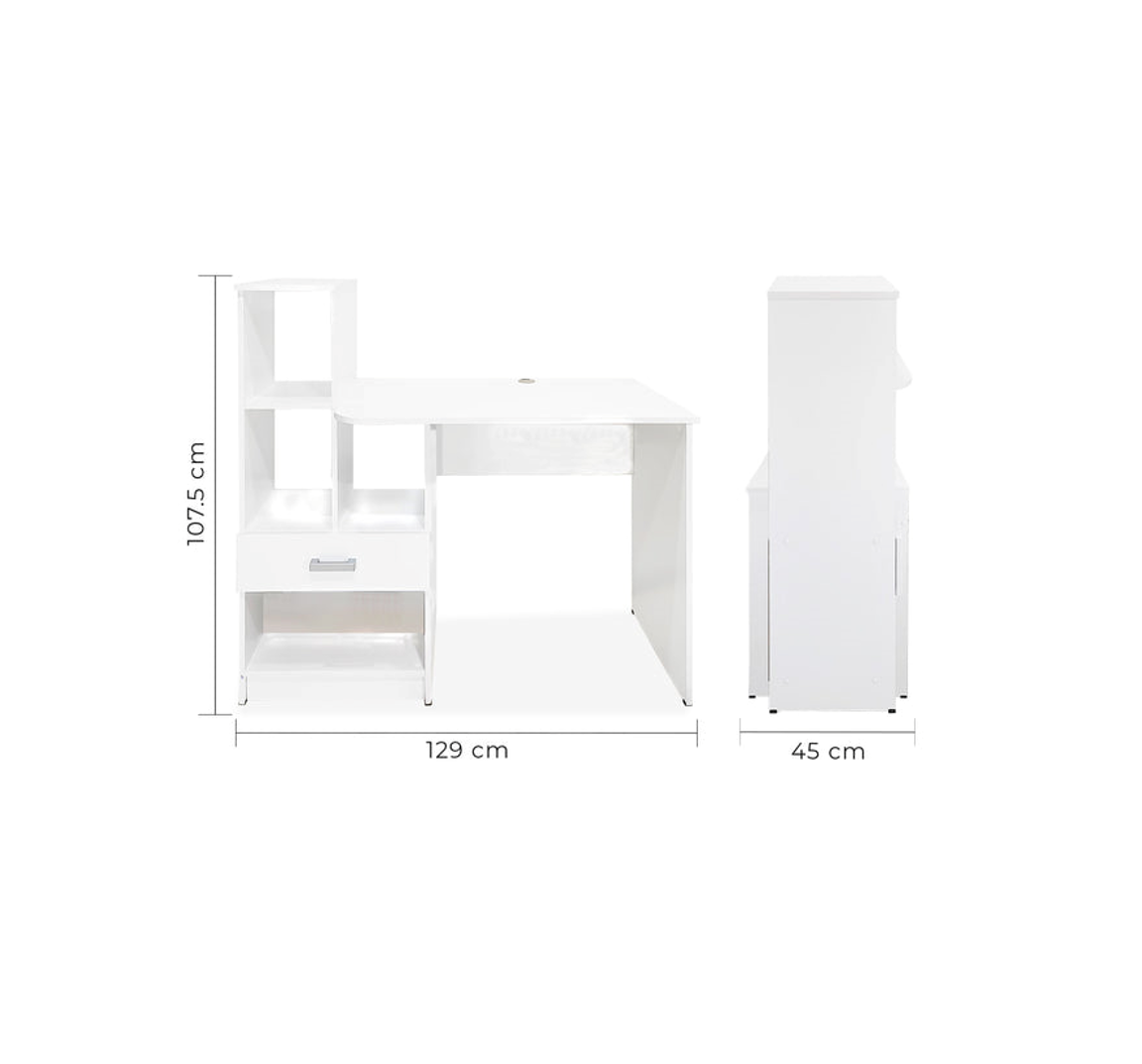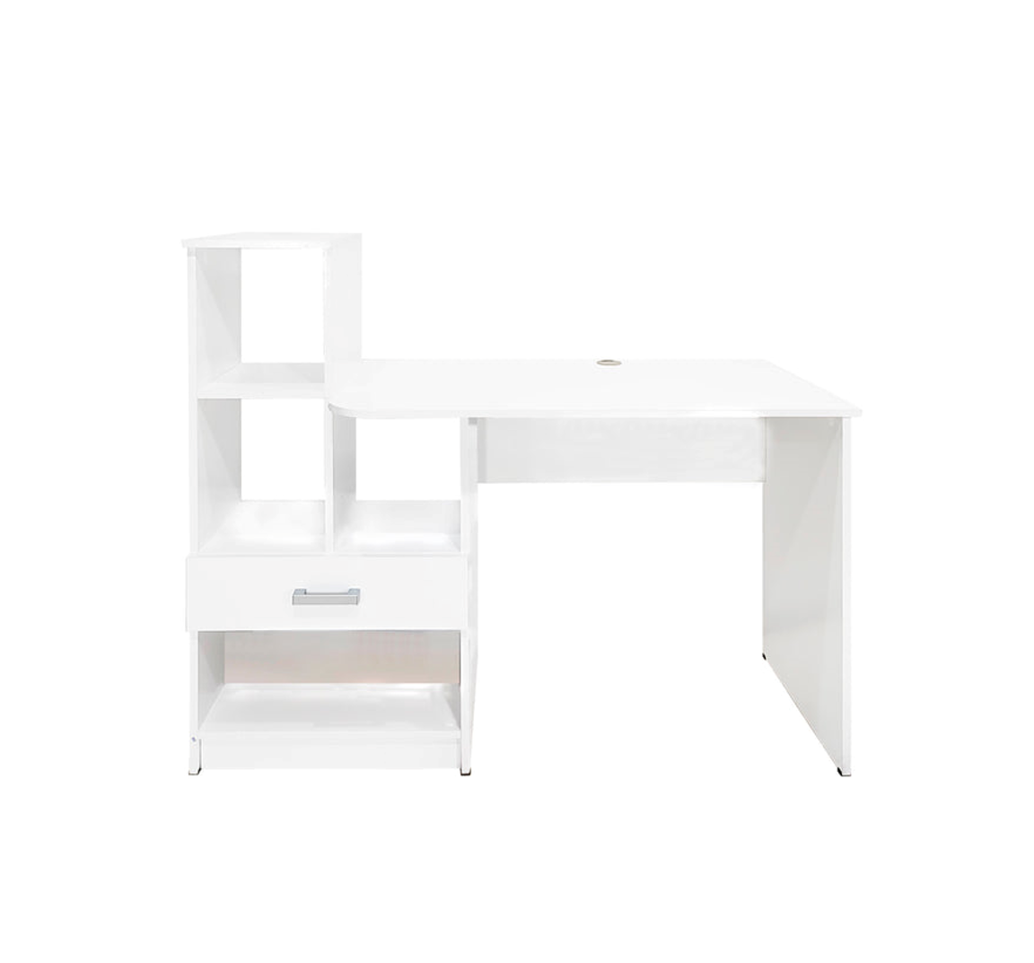 Es una solución ideal para modernizar cualquier espacio de trabajo. Diseñado meticulosamente para combinar funcionalidad con estilo, este escritorio ofrece una amplia superficie de trabajo que facilita la multitarea y la organización. La melamina utilizada en su construcción asegura durabilidad y facilidad de mantenimiento, mientras que su diseño compacto es ideal para maximizar la eficiencia en espacios reducidos. Este escritorio es perfecto para profesionales y estudiantes que buscan un entorno de trabajo ergonómico, organizado y estilísticamente atractivo.