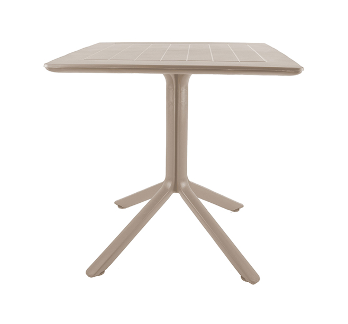 mesa: en termoplástico polimerizado de polipropileno de baja densidad para intemperie e interior, resistente a los rayos ultravioleta (UV), al ambiente salino, a los cambios bruscos de temperatura y a corrosión de ácidos alcalinos; es inocuo y no guarda aromas.