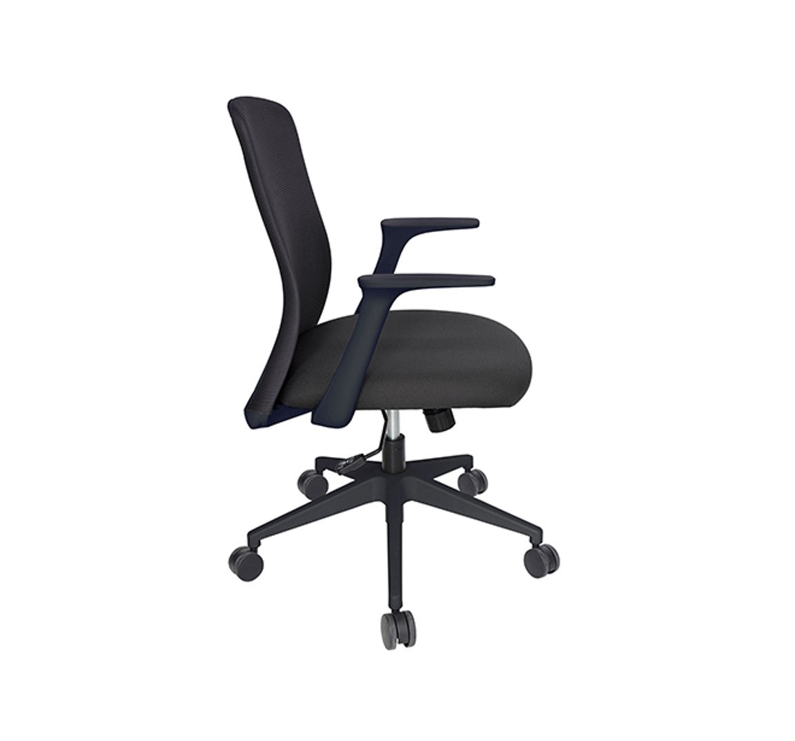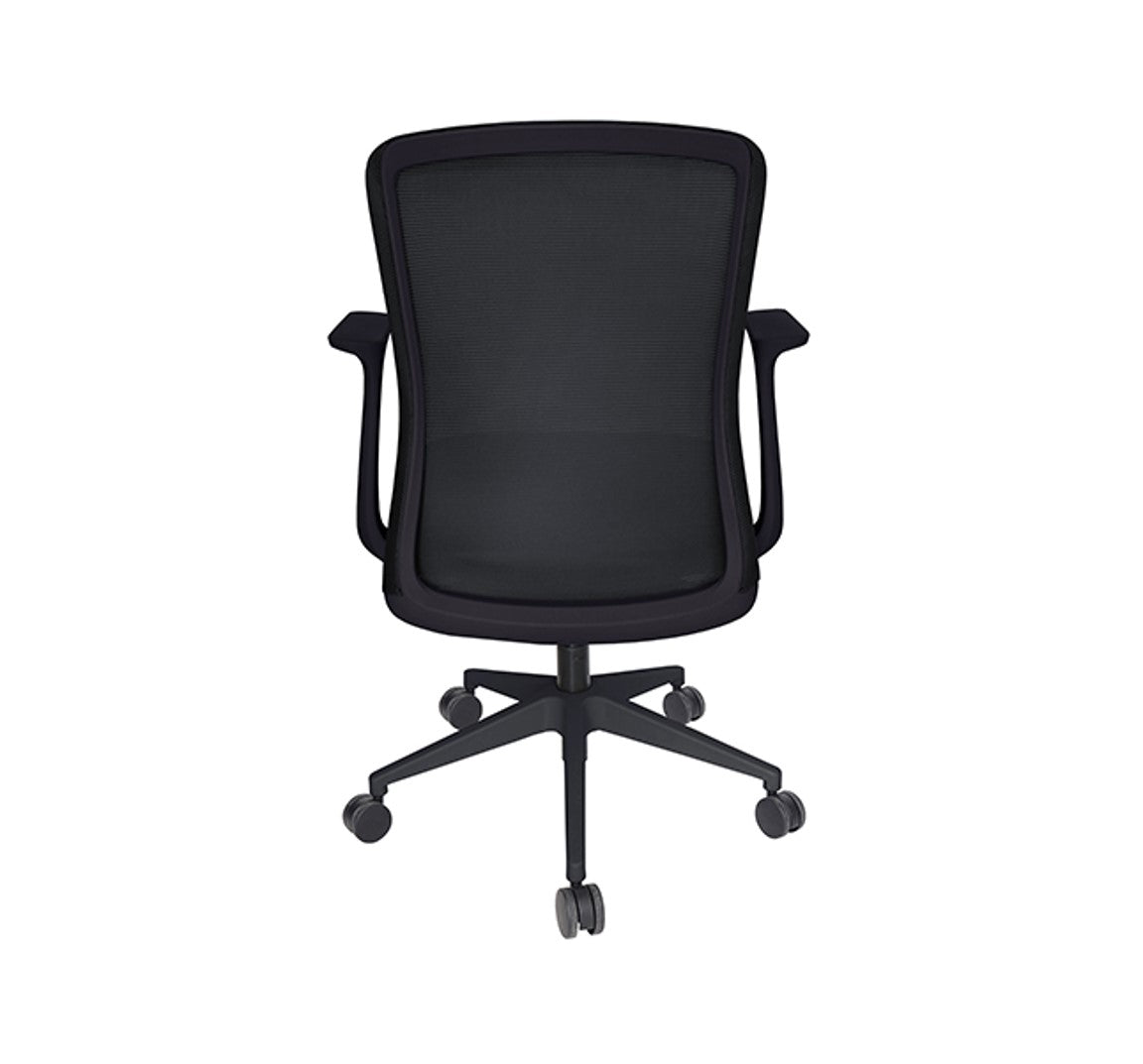 respaldo: respaldo de malla de color negro y asiento tapizado en tela de color negro.